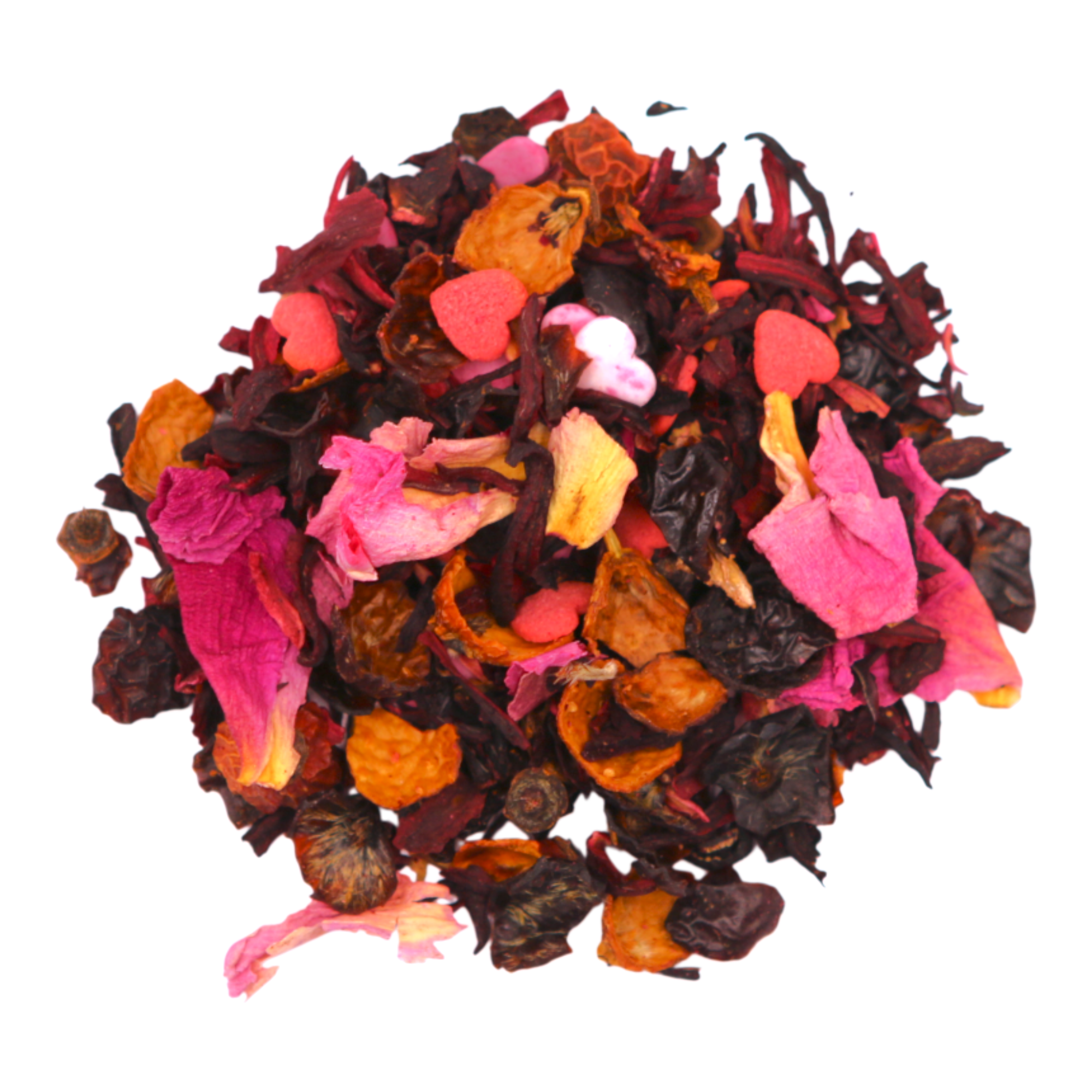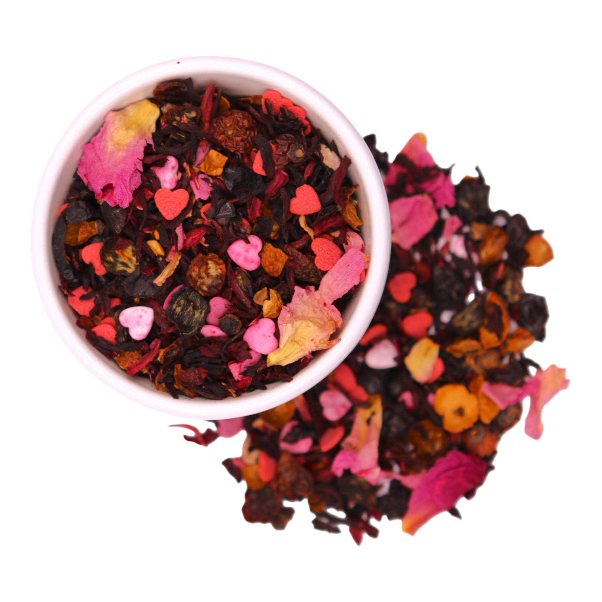 A romantic and visually stunning infusion featuring hibiscus, rose peel, and delicate peony, accented with sweet sugar decorations for a truly enchanting experience.