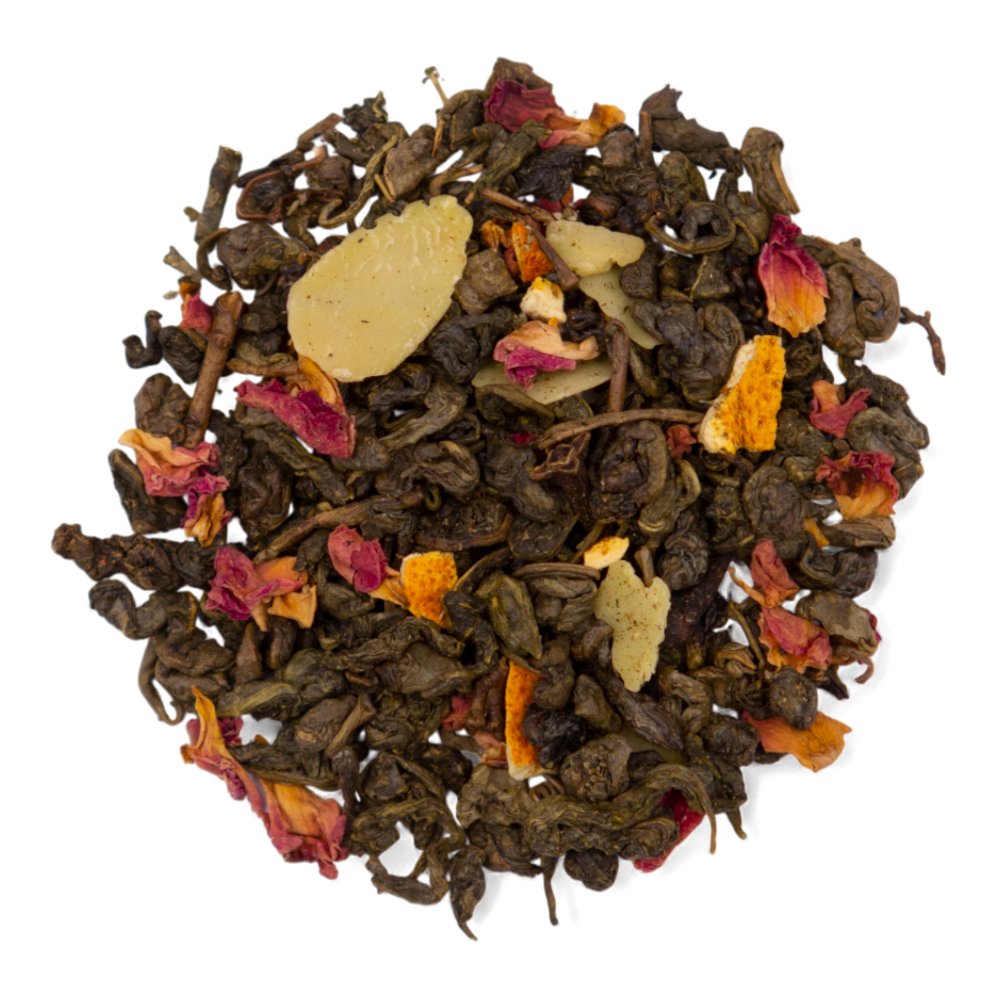 Ingredients: Gunpowder green tea (China), almonds, orange peel, cloves, raisins, rose petals, raspberry leaves, natural flavouring.