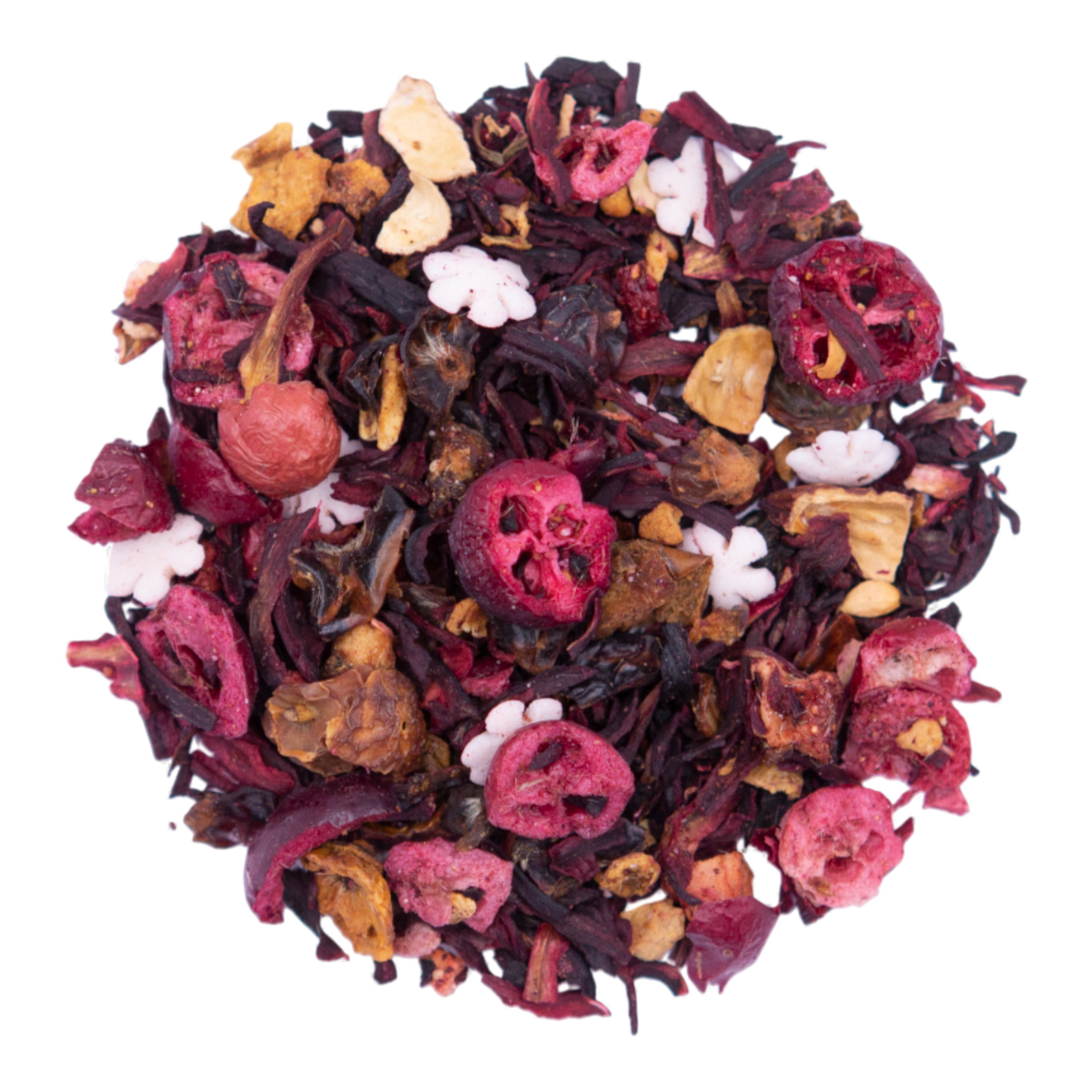 Ingredients: Hibiscus, rose peel, sugar decorations, apple, cranberry, cherry, strawberry, natural flavouring.