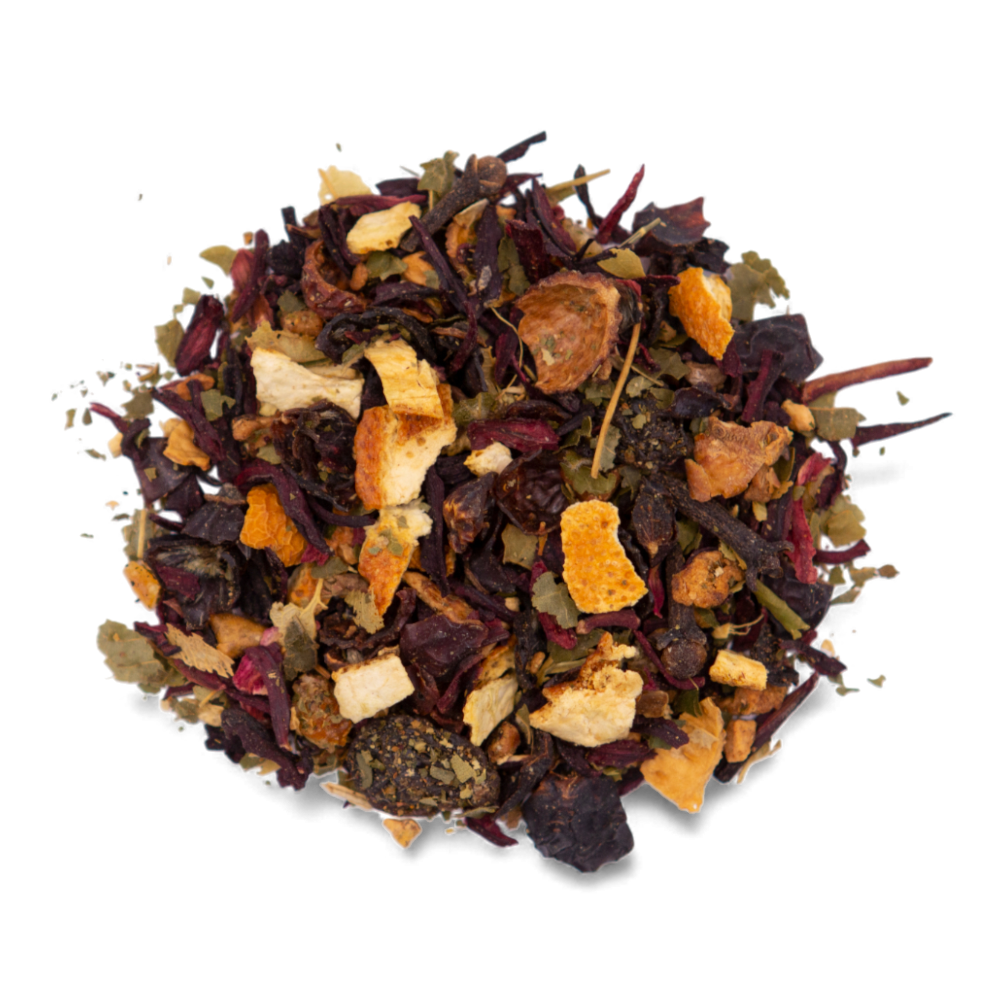 Ingredients: Hibiscus, rose peel, apple, raisins, orange peel, linden leaf, clove, ginger, natural flavouring.
