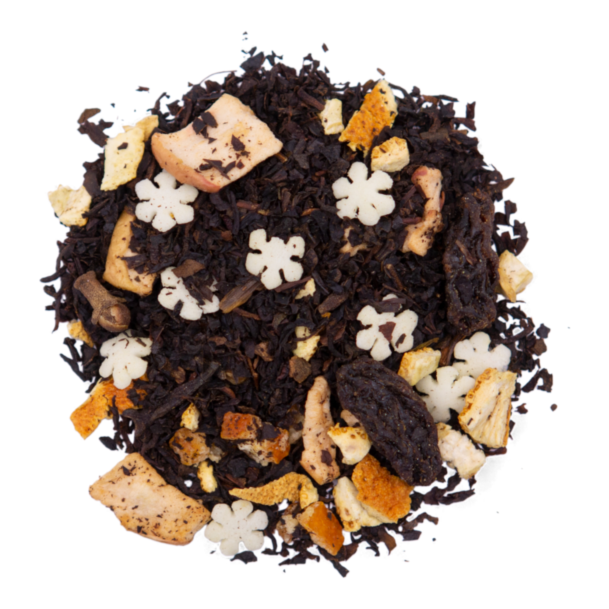 Ingredients: Black tea (Yunnan, China), sugar decorations, orange peel, candied orange, raisins, cinnamon, apple, cloves, natural aroma.