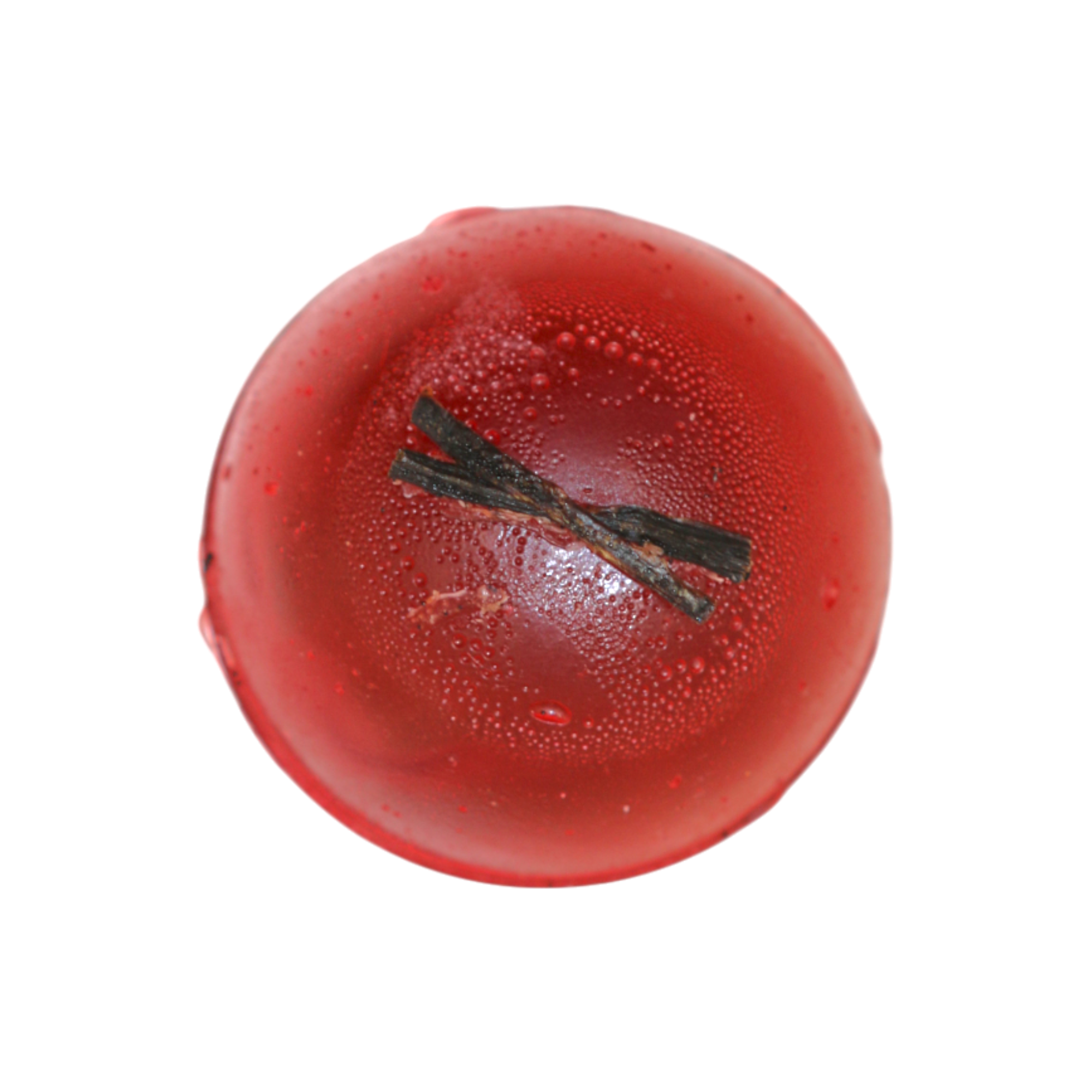 Silky vanilla meets smooth coffee in a creamy, comforting bomb, elegantly adorned with a vanilla pod.